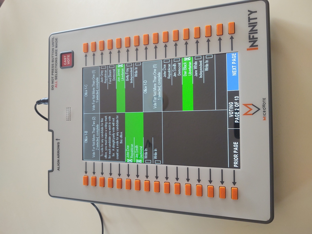 Our flagship product, the MicroVote Infinity Voting Panel (VP-1) is a Direct Recording Electronic (DRE) voting device for use in governmental and private elections. It incorporates a bright, colorful display, individual tactile buttons for operator control and voter selection, memory card technology for activation control and data collection/transport, and reliable embedded computer technology.